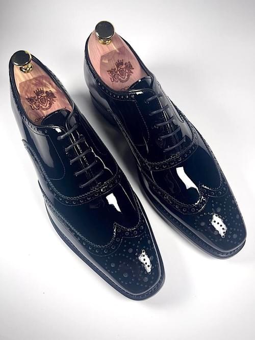 NEW: Black Patent Leather Full Brogue Wingtip Oxfords