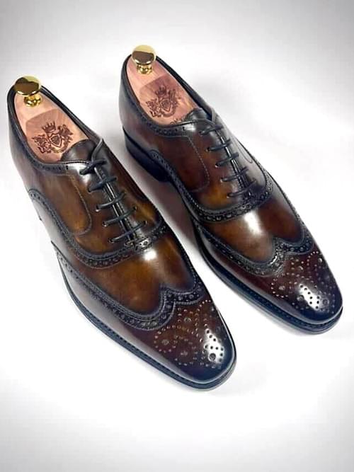 NEW: Tobacco Patina Leather Full Brogue Wingtip Oxfords